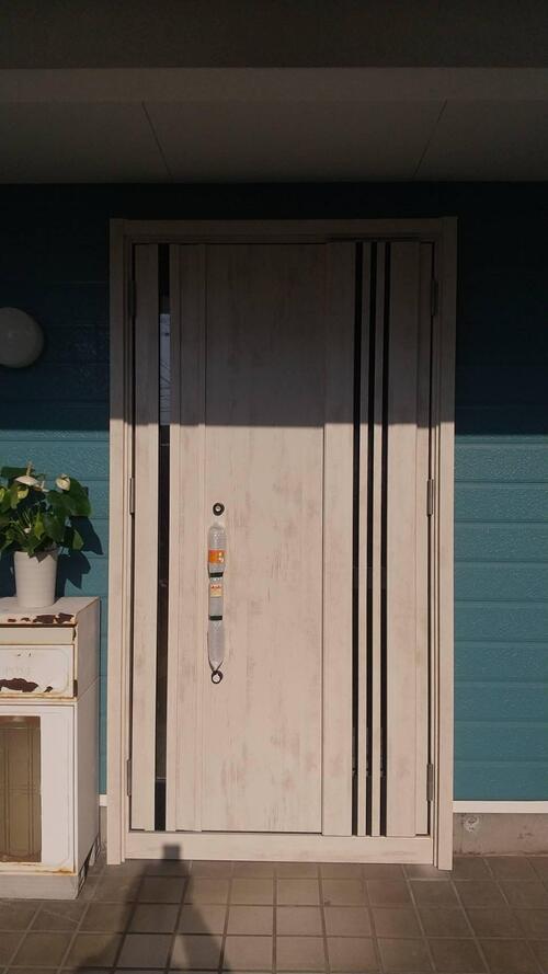 リシェント玄関ドア 施工ポイント 今のドアは防犯面が心配だから取替えたいとのご要望。 リシェント玄関ドアM83型に取替えました。 色は外壁にも合う、エクリュアイボリーです♪ 防犯性、断熱性も上がりました! リシェント玄関ドアは一日でリフォームできます。