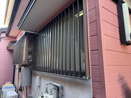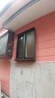浴室 外窓交換 施工ポイント 浴室リフォームに合わせて、外窓交換をしました。窓の大きさを半分くらいにしたため、浴室の断熱性があがりました。外壁の復旧をし、塗装も周りの塗装と変わらないように塗りました。写真では窓が見えなくなるので外していますが、可動ルーバー付引違い窓です。格子や雨戸の役割をします。